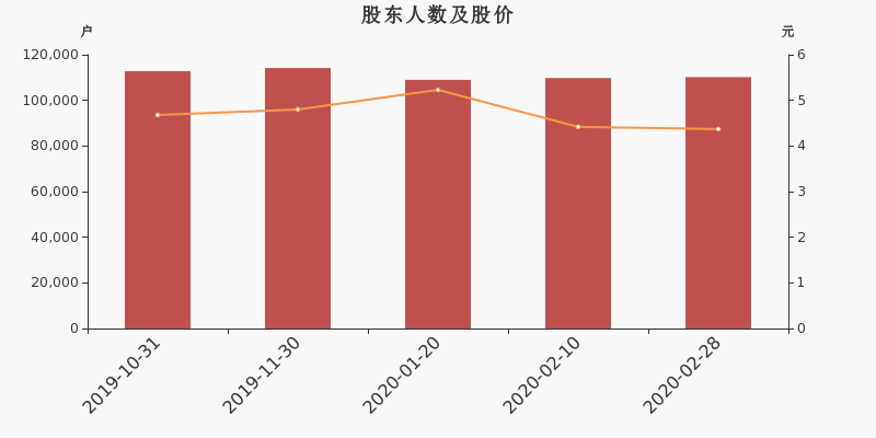 2019年10月31日至今,公司股东户数有所下降,区间跌幅为2.30%。2019年10月31日至2020年2月28日区间股价下降6.62%。