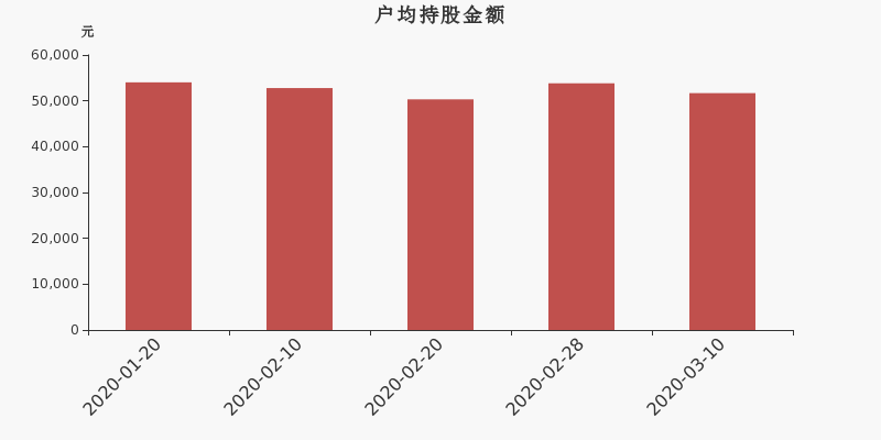 截至2020年3月10日,公司最新总股本为13.54亿股,其中流通股本为11.54亿股。户均持有流通股数量由上期的6325股上升至6576股,户均流通市值5.17万元。