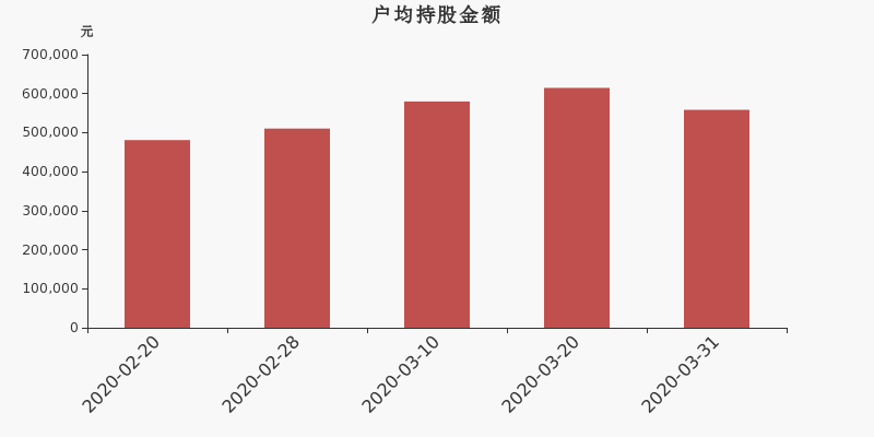 2020年2月20日至今,公司股东户数显著下降,区间跌幅为14.66%。2020年2月20日至2020年3月31日区间股价下降1.92%。